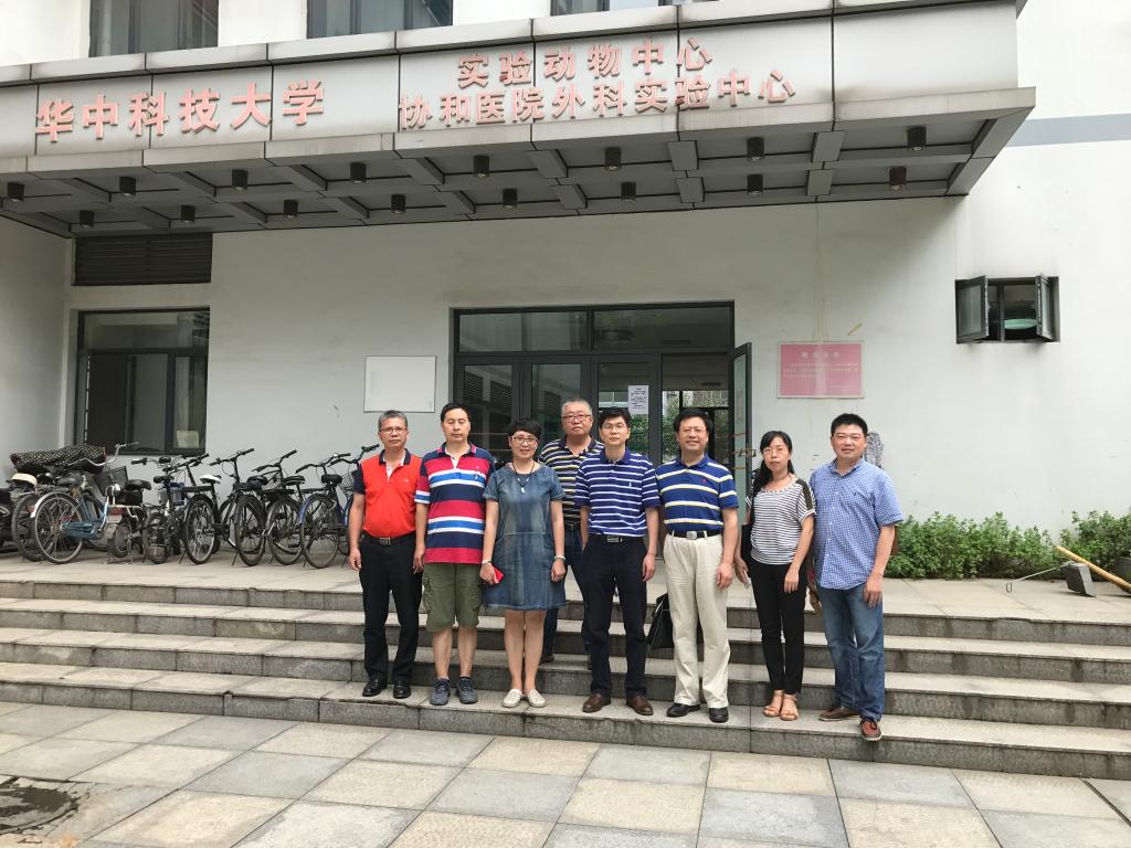 2017年6月23日上午,华中科技大学实验室与设备管理处李震标处长、朱青萍科长一行两人在实验室与设备管理处刘卫东科长、基础医学院秦选斌书记和秦南彦主任、药学院程灵老师在动物中心负责人的陪同下,来实验动物中心指导工作。