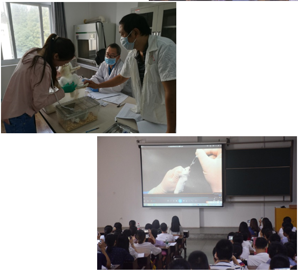 为了技术人员培训及考试能顺利成功的举办,实验动物中心负责人以高度负责的态度积极协调组织,积极参与。动物实验是生命科学的基础,而实验操作又是需要学员亲自动手实践的,有些学员甚至都没接触过实验动物,为了充分发挥我培训基地的功能,达到培训效果,首次打破传统的教师授课方式,启用操作视频教学,通过增加注释、关键知识点的放大特写以突出重点知识,比教师反复授课节约时间和精力,彻底改变了过去传统教师演示实验操作中学生里三层外三层围观的局面,同时也通过直观性、形象性、参与性、可重复性、大容量性、高效性等方式提高了教学效率,让学生对动物实验操作有个客观认识,对后面的实际操作训练达到了事半功倍的效果。