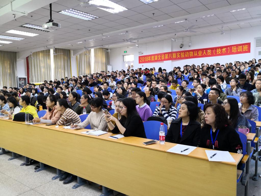 10月27日,2018年度湖北省第八期实验动物从业人员(技术)培训班的操作培训在同济医学院一号教学楼3大教室举办。来自武汉大学、华中科技大学、中科院武汉病毒所、水生所、中南民族大学、武汉体育学院、华中农业大学、湖北中医药大学等多家单位的636名学员在网上报名参加。教室里座无虚席,连走道上也站了学员。